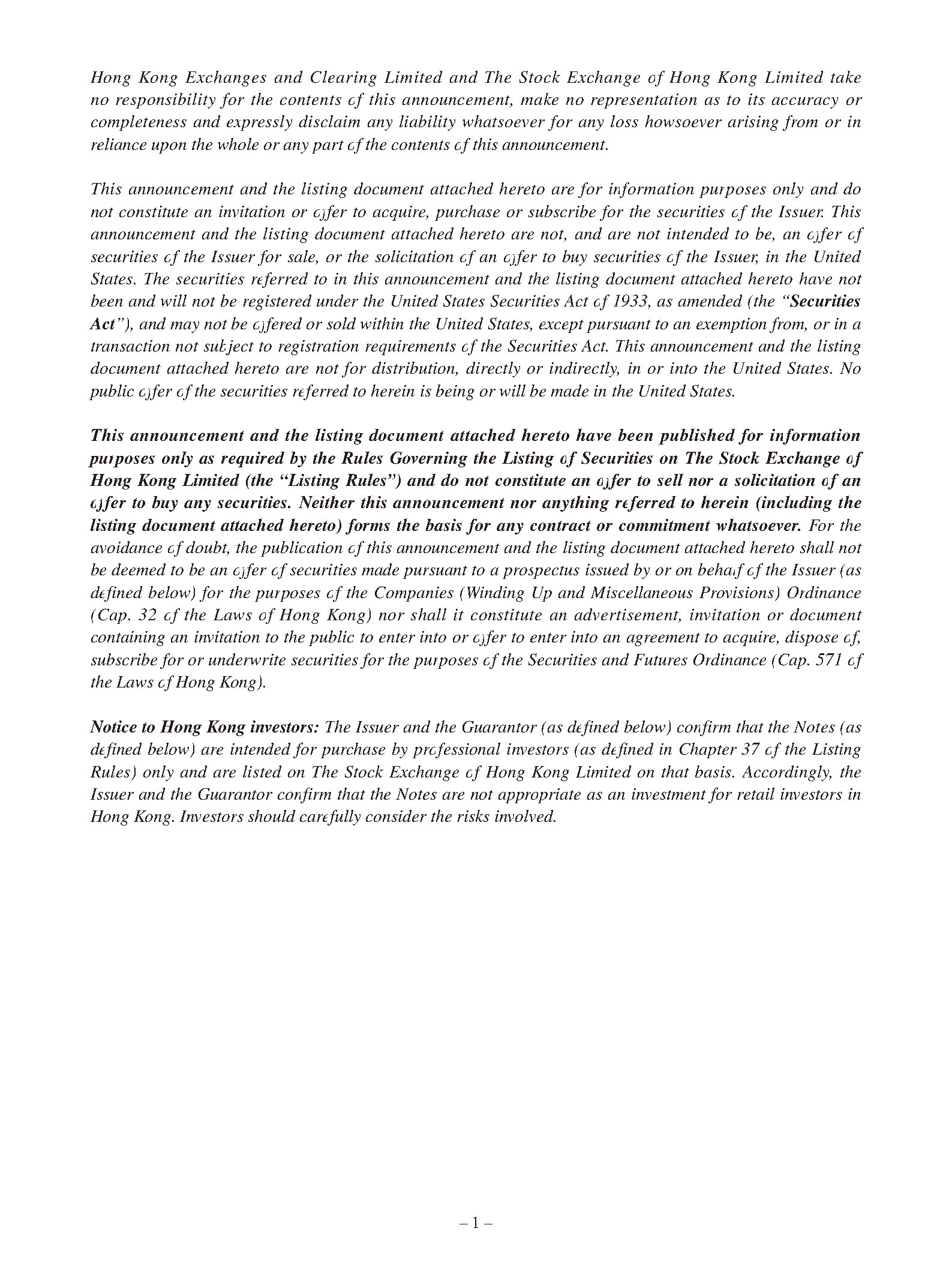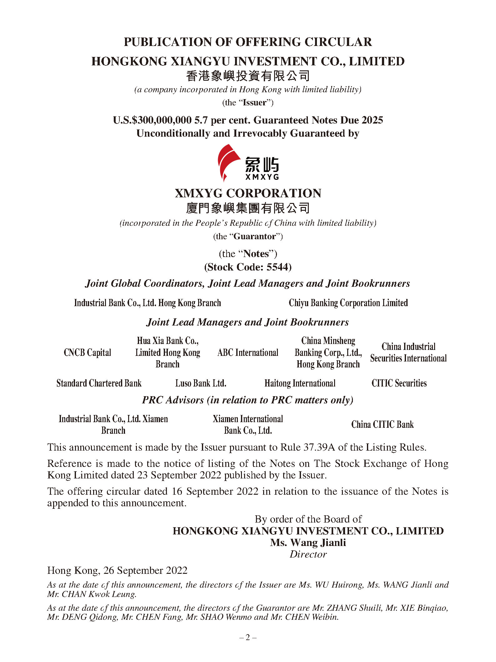 發(fā)行通函發(fā)布公告(Publication?Announcement?of?Offering?Circular)