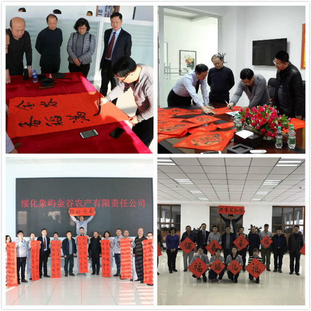 走訪中,時(shí)近春節(jié),為傳承中華優(yōu)秀傳統(tǒng)文化,營(yíng)造祥和愉悅的節(jié)日氛圍,廈門市總工會(huì)、象嶼集團(tuán)工會(huì)領(lǐng)導(dǎo)還與象嶼農(nóng)產(chǎn)員工同樂(lè),“寫春聯(lián)送祝?!?。大家集思廣益,構(gòu)思春聯(lián)內(nèi)容。有象嶼農(nóng)產(chǎn)員工提出,“當(dāng)保障嚴(yán)管理齊謀共發(fā)展,勇創(chuàng)新促增效鑄百年象嶼”,橫批“家和萬(wàn)事興”;邵主席接著提出一聯(lián),“創(chuàng)新轉(zhuǎn)型謀發(fā)展,開(kāi)放包容續(xù)宏篇”,橫批“繼往開(kāi)來(lái)”;市總工會(huì)領(lǐng)導(dǎo)也一同創(chuàng)作,“象嶼啟紅帆,金谷囤滿倉(cāng)”,橫批“合作共贏”,希望象嶼農(nóng)產(chǎn)能以合作精神,在新的一年里繼續(xù)揚(yáng)帆起航、共享五谷豐登。每條春聯(lián),都由市總工會(huì)領(lǐng)導(dǎo)親自潑墨揮毫,行書、隸書、草書……揮灑中,一幅幅散發(fā)著清新墨香的喜慶大紅春聯(lián)展現(xiàn)在大家眼前?,槵樕峡诘拇郝?lián)春意濃,各級(jí)工會(huì)組織對(duì)員工們深深的節(jié)日問(wèn)候和祝福送到了每個(gè)人的心坎里。