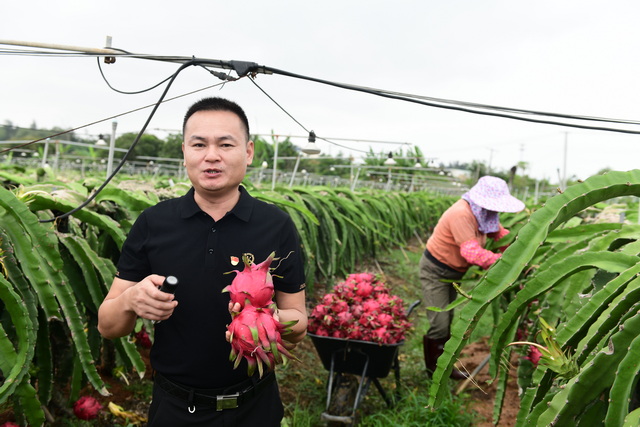 其中,在一產(chǎn)方面,團(tuán)隊協(xié)同鎮(zhèn)、村梳理政策,探索種植技術(shù)升級,促進(jìn)提質(zhì)增效,實現(xiàn)年產(chǎn)值超過4000萬元。經(jīng)過技術(shù)改良,他們培育的火龍果皮厚、耐儲藏、甜度高,還有黃龍果和青龍果,個頭更大、果味更香,經(jīng)濟(jì)價值也更高。