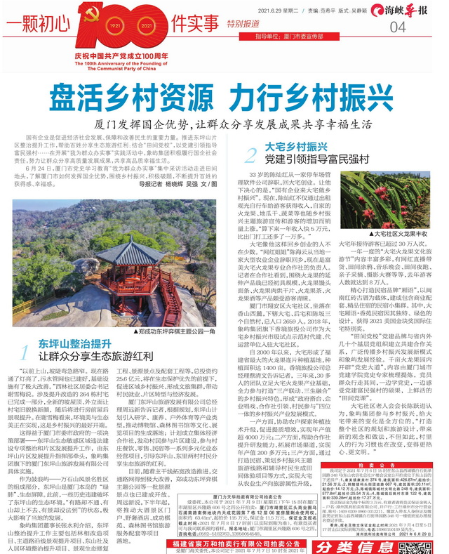 如今的大宅正加快形成品牌效應(yīng),成為“看得見山,望得見水,記得住鄉(xiāng)愁”的都市田園典范和廈門新晉的旅游目的地,走出一條“三產(chǎn)聯(lián)動”引領(lǐng)鄉(xiāng)村振興的光明道路。