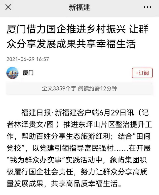 媒體對象嶼集團(tuán)的工作成效予以充分肯定。廈門日報刊登記者手記指出:在事業(yè)上不斷破題發(fā)展、改革突破的背后,是鏡頭里象嶼這家國企的“俠骨柔情”、責(zé)任擔(dān)當(dāng)。小家服從大家、企業(yè)維護(hù)國家的大局意識,勇當(dāng)先鋒的擔(dān)當(dāng)精神,早已融入象嶼的精神血脈。國有企業(yè)為國家經(jīng)濟(jì)社會發(fā)展提供了可靠支撐,不愧為黨和國家最可信賴的“頂梁柱”。