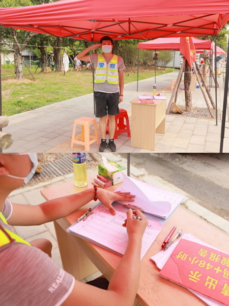 在海滄新陽隔離點,象嶼志愿者自9月27日進駐以來,就全力做好被隔離人員的生活服務(wù)工作,如分餐、藥物運輸、生活垃圾清運等。用厚厚的防護服包裹全身,淋漓的汗水、悶熱感甚至窒息感接踵而來,但他們不叫苦不叫累,每天仍堅持工作超過10個小時。在海翔大道東埔村檢查站點,象嶼志愿者從9月17日開始的交通協(xié)管任務(wù)也仍在持續(xù)。他們以每天3班、24小時不間斷的堅守,確保疫情不擴散。