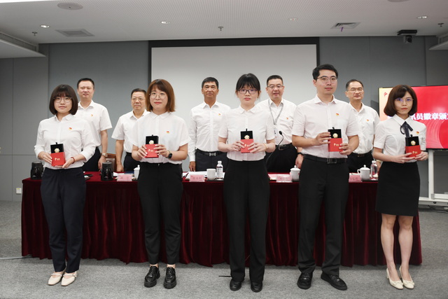 ▲集團領(lǐng)導(dǎo)為通訊員代表頒發(fā)通訊員徽章,象嶼集團通訊員隊伍正式組建成立。