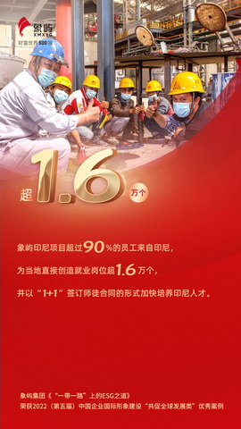 作為國家發(fā)改委“一帶一路”重點項目,象嶼印尼項目積極落實全球發(fā)展倡議,踐行ESG理念,發(fā)揮象嶼集團在供應鏈、物流等領域優(yōu)勢,開展國際產(chǎn)能合作,既有力保障了中國市場對不銹鋼的巨大需求,提升了不銹鋼產(chǎn)業(yè)鏈的全球競爭力,也對印尼的產(chǎn)業(yè)發(fā)展、人民就業(yè)、基礎設施改善等發(fā)揮重要作用。