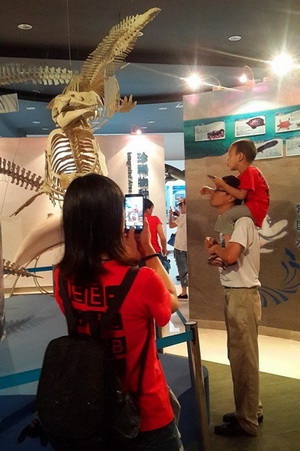 象嶼地產(chǎn)朱燕霞家的寶貝拿著手機(jī)四處對(duì)著館內(nèi)標(biāo)本拍照,吸引了大家的目光,都笑稱(chēng),看來(lái)未來(lái)將多了名海洋攝影師。他的爸爸也很起勁地讓孩子騎在自己的背上,當(dāng)起了解說(shuō)員,介紹他所了解的海洋生物的點(diǎn)滴。媽媽則在旁邊不時(shí)定格一個(gè)個(gè)親密的幸福瞬間。