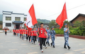 紀(jì)念中國(guó)人民抗日戰(zhàn)爭(zhēng)暨世界反法西斯戰(zhàn)爭(zhēng)勝利70周年大會(huì)上的雄壯歌聲猶縈繞在耳,9月12日,旌旗飄揚(yáng),歌聲嘹亮,一支雄赳赳氣昂昂的青年隊(duì)伍又大步走上了長(zhǎng)征路……