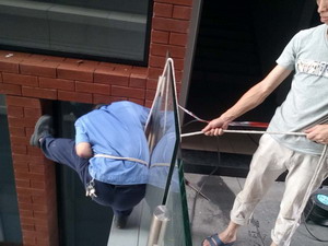 王志富是臺(tái)風(fēng)登陸當(dāng)晚象嶼高尚物業(yè)公司留下值守的54位員工中的一個(gè),他負(fù)責(zé)國(guó)際航運(yùn)中心D棟的安全。D棟處于風(fēng)口位置。凌晨2點(diǎn)多,風(fēng)大作,雨加急,那聲勢(shì)猶如排山倒海,讓這位魁梧的大漢也是心驚。眼看防汛沙袋做的大門加固也無(wú)法阻擋風(fēng)雨的侵入,他不顧只身一人,奮力頂住玻璃大門?!耙坏┯晁嗳氪筇?,流入電梯井,后果不堪設(shè)想!”聞?dòng)嵹s來(lái)增援的4位值守人員也都撲上來(lái)用力頂住大門,五人使足了勁,一個(gè)多小時(shí)后,風(fēng)力減弱,他們以堅(jiān)定的意志戰(zhàn)勝了狂暴的臺(tái)風(fēng),玻璃門沒(méi)有倒下,D棟安全了!