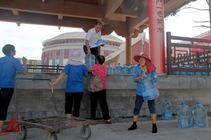 大嶝小鎮(zhèn)被視為兩岸經(jīng)貿(mào)交流的重要平臺(tái),入駐商戶上千家。一停電,大嶝小鎮(zhèn)的全體人員立即進(jìn)入緊急工作狀態(tài)。啟用應(yīng)急柴油發(fā)電機(jī)發(fā)電,除確保連續(xù)24小時(shí)應(yīng)急供電外,還貼心地設(shè)置了臨時(shí)手機(jī)充電處,為商戶及當(dāng)?shù)鼐用裉峁┍憷?。入駐的商戶中也不乏愛(ài)心人士,他們組織義工,資助桶裝水500桶,有序派發(fā)給缺水居民?!叭慷际敲赓M(fèi)的?!币?yàn)樨?zé)任,因?yàn)榈懒x!