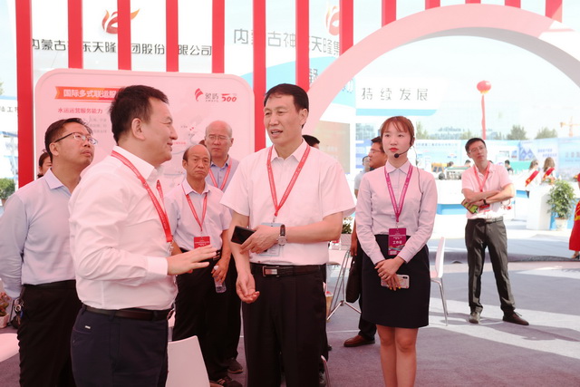 開幕式結(jié)束后,陜西省人大常委會(huì)副主任、榆林市委書記、市人大常委會(huì)主任、黨組書記戴征社,榆林市委副書記、榆林市人民政府市長李春臨等市領(lǐng)導(dǎo)率重要參會(huì)嘉賓們蒞臨象嶼集團(tuán)展位,象嶼集團(tuán)黨委副書記、總裁陳方,象嶼股份黨委委員、副總經(jīng)理程益亮,象嶼股份副總經(jīng)理張軍田,象道物流董事長溫兆仁等熱情接待。領(lǐng)導(dǎo)們駐足象嶼展位,饒有興趣地聽解說員講解象嶼國際多式聯(lián)運(yùn)服務(wù)平臺(tái)及能源化工產(chǎn)業(yè)鏈服務(wù)平臺(tái),象嶼的發(fā)展模式得到榆林市領(lǐng)導(dǎo)及嘉賓們的高度認(rèn)可。