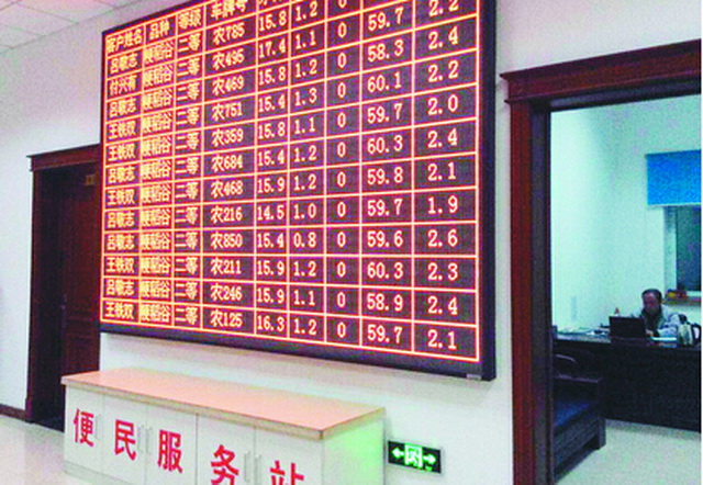 休息室內(nèi)LED顯示屏正在滾動顯示送糧農(nóng)民信息