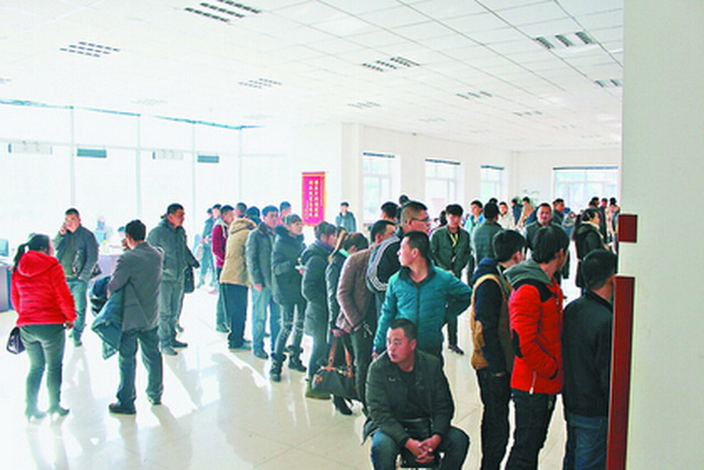 綿延幾公里的大貨車分四路匯集富錦象嶼金谷農(nóng)產(chǎn)有限公司外等候送糧,警車徘徊在各個路口維持秩序;飛機場地般寬闊平坦的院內(nèi)廣場上,稱重、檢驗、卸糧、烘干等一系列交糧工作有條不紊地進行,一座座大糧倉按編號排列等待蓄糧;檢驗檢測大廳里,工作人員各司其職,認真工作。透過玻璃墻,農(nóng)民在休息室里一目了然。一張告示“請水稻客戶當天結(jié)算,換取發(fā)票,否則無法打款”提醒往來農(nóng)民打款須知。晚17:00,免費餐廳廚房大鍋菜葷素搭配,品類齊全,白開水供應充足。