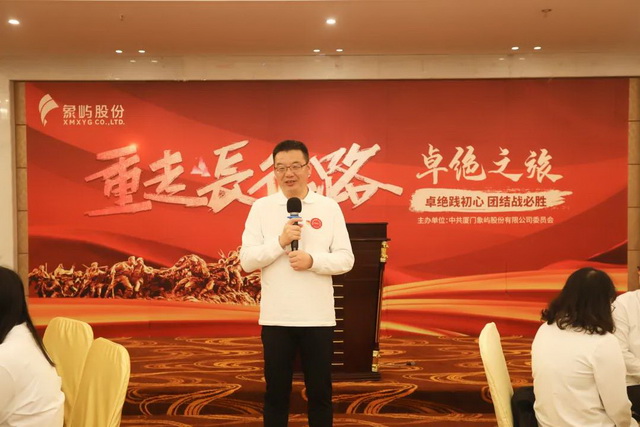 在授旗動員儀式上,“重走長征路”百人團(tuán)整裝待發(fā)。象嶼集團(tuán)黨委副書記、總裁陳方作動員講話。他指出,象嶼股份“卓絕之旅”是各行業(yè)公司支線中參加人數(shù)最多、海拔最高、挑戰(zhàn)最大的,充分體現(xiàn)象嶼股份作為集團(tuán)主力軍應(yīng)有的追求卓越、勇于突破的責(zé)任擔(dān)當(dāng)和上下齊心、協(xié)同互助的團(tuán)隊(duì)力量。象嶼股份同仁應(yīng)以勇攀夾金山的精氣神,鑄就“六五”發(fā)展的視野格局和精神高地,把長征精神和戰(zhàn)略定力、文化傳承、團(tuán)隊(duì)作風(fēng)、核心能力的打造結(jié)合起來。