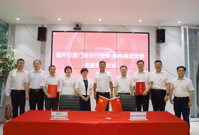 座談會后,雙方黨委舉行《黨組織結對共建協議》簽約儀式。國開行廈門市分行黨委委員、副行長周樹林與象嶼集團黨委副書記、工會主席邵蕰默代表雙方簽署共建協議,國開行黨委班子領導曾麗卿、蔡丹華、潘景南,象嶼集團黨委班子領導張水利、陳方、鄧啟東、許振龍,以及雙方職能部門代表等共同見證這一重要時刻。