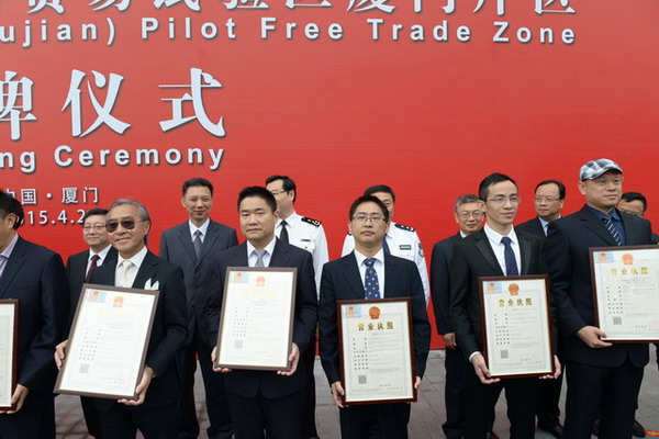 中國(福建)自由貿(mào)易試驗區(qū)廈門片區(qū)在兩岸貿(mào)易中心舉行揭牌儀式